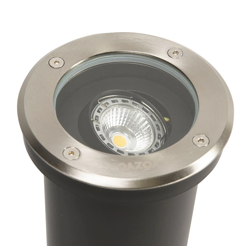Schöner Bodeneinbaustrahler von guter Qualität mit schwerem Edelstahl-Abdeckring. Dieser Bodenstrahler hat eine schwenkbare Fassung, sodass du das Licht perfekt nach deinem Bedarf ausrichten kannst. Die Lampe ist mit einem externen Dimmer dimmbar (Dimmer nicht im Lieferumfang enthalten) und hat einen Durchmesser von 13 cm. Die Einbaumaße dieses Spots: Durchmesser 12,6 cm, Tiefe 14,5 cm. Der Spot wird mit einem Kabel von ca. 30 cm geliefert, dieses muss mit dem Anschlusskabel wasserdicht verbunden werden. Der Spot ist zudem befahrbar und ist bestens für eine Einfahrt geeignet.